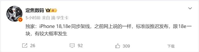 据悉,从iPhone 18系列开始,苹果将彻底调整维持多年的发布策略。以往经典的年更节奏将转变为一年两更,这种发布模式旨在更快速地响应市场需求并深度优化供应链。